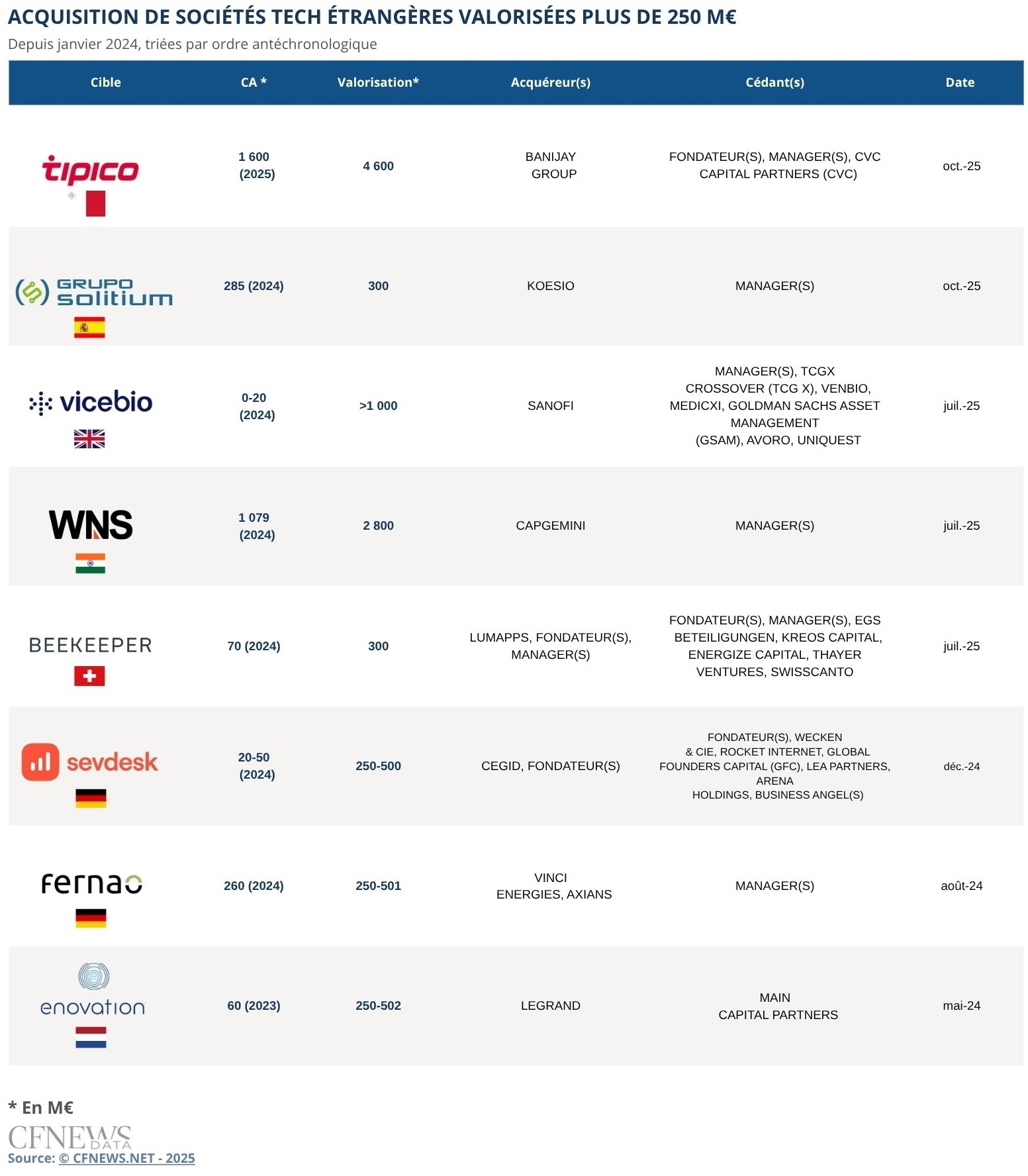 ACQUISITION DE SOCIÉTÉS TECH ÉTRANGÈRES VALORISÉES PLUS DE 250 M€. ©CFNEWS.net - 2025