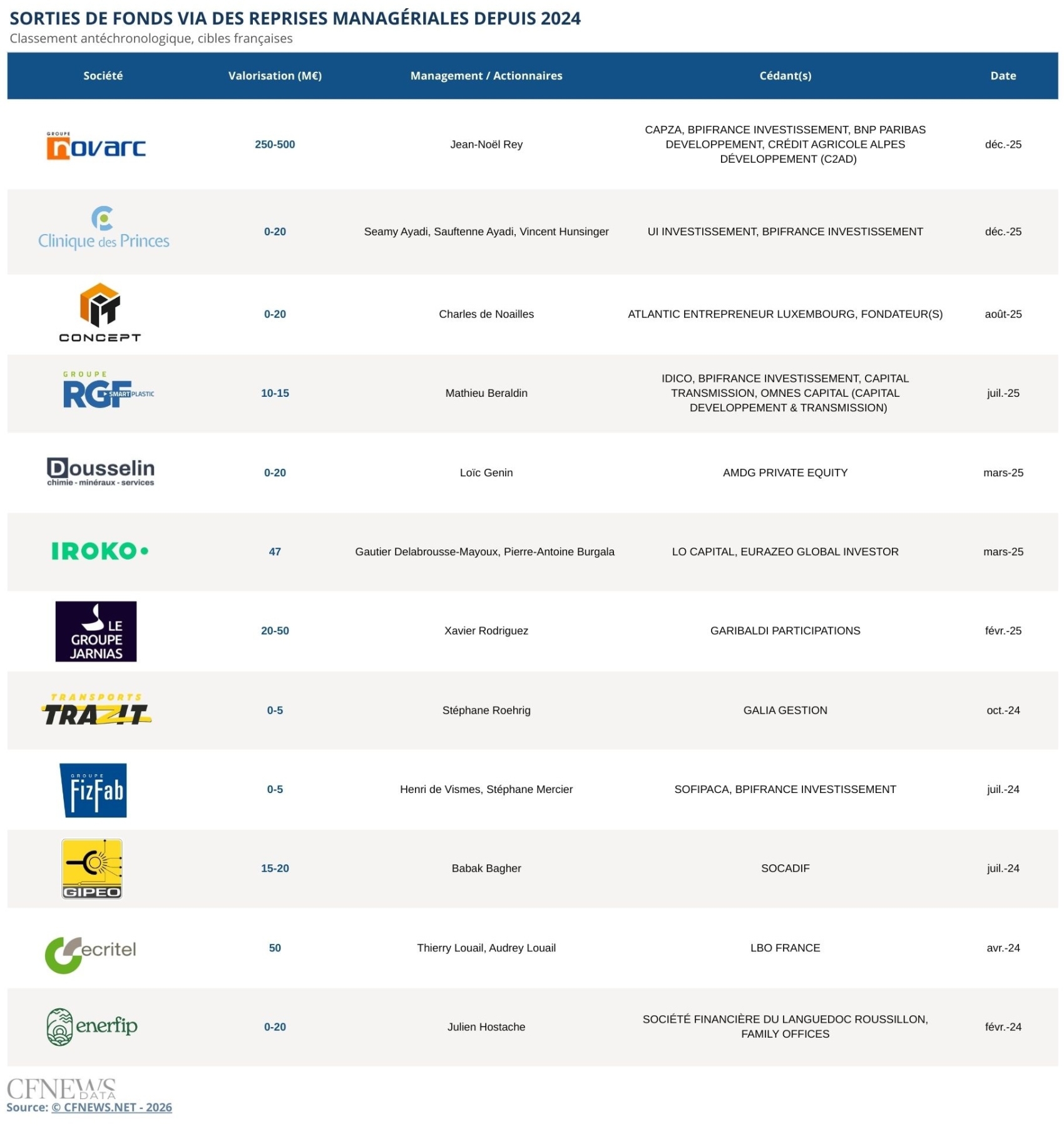 SORTIES DE FONDS VIA DES REPRISES MANAGÉRIALES DEPUIS 2024. CFNEWS.net - 2026