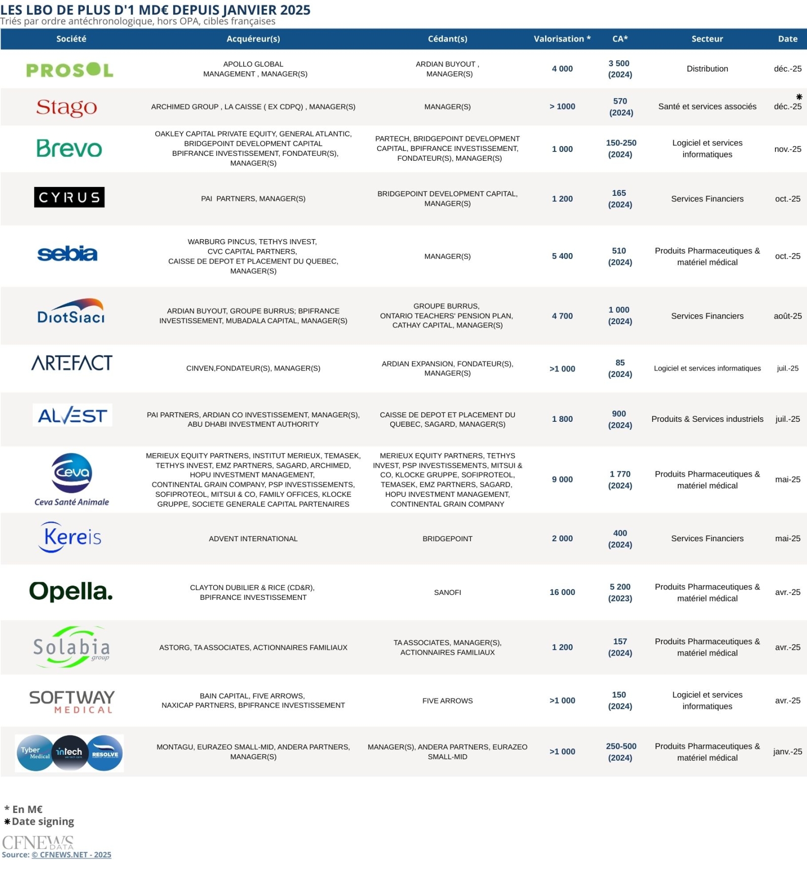 LES LBO DE PLUS D'1 MD€ DEPUIS JANVIER 2025 ©CFNEWS.net - 2025